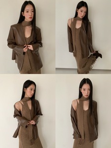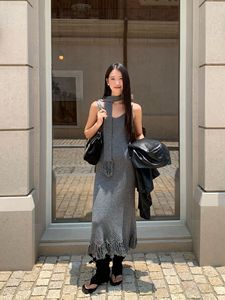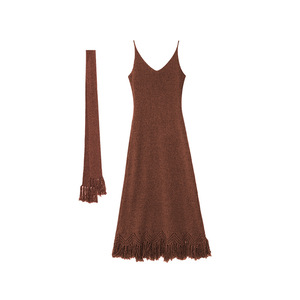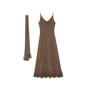 诠释美 NEWOPEN 25秋温柔修身V领流苏内搭针织吊带连衣裙女F6311