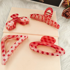 粉色系甜美波点抓夹半圆交叉三角精致高级感夏天盘发鲨鱼夹发饰女