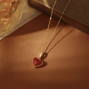 2025年新作両面桃心貝殻ネックレス、軽奢で高級感のあるネックレス、個性的なデザインの女性用アクセサリー