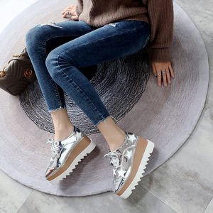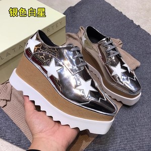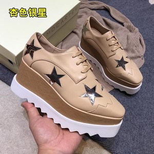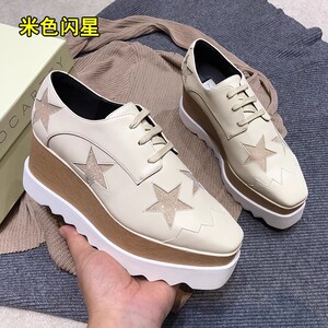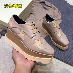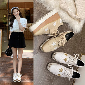 香港真皮星星松糕鞋女厚底2025春秋季英伦stella网红坡跟单鞋