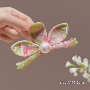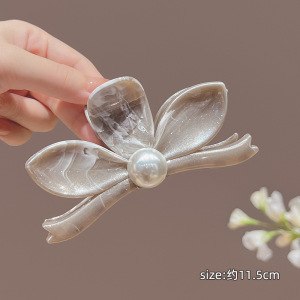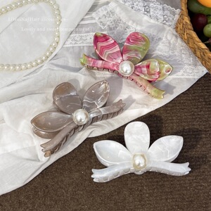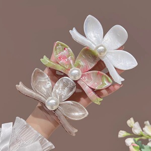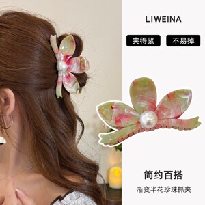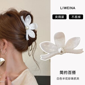 复古油画感珍珠花朵发夹女后脑勺盘发抓夹鲨鱼夹头饰发卡2025新款