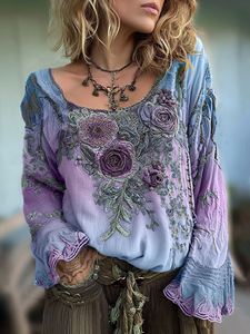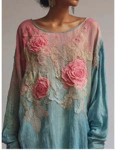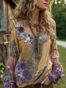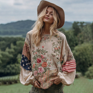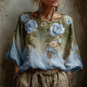 2025新款跨境热卖3d印花女士圆领长袖复古波西米亚上衣