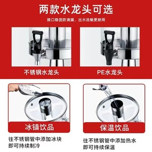 商用自助餐不锈钢加厚果汁鼎单双头制冷饮料机透明冷饮机带水龙头