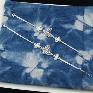 エスニックスタイルジュエリー手作り模造ミャオ族シルバーマットシルバー DIY ブレスレット空アクセサリーベースインサート小さな蝶の手の装飾