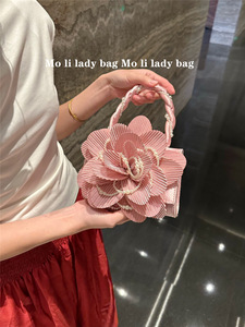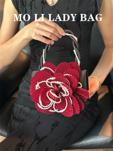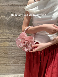 2025新中式复古麻花珍珠旗袍包玫瑰立体粉粉花朵包仙女包斜跨女包