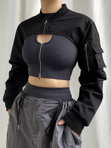 Lianlianbuwang 秋の新ファッションハーフオープンカラージッパーカバーアップデザインニッチ不規則なジャケットジャケット