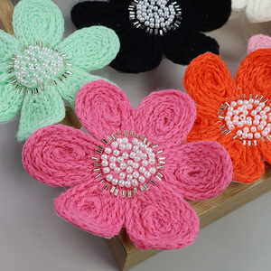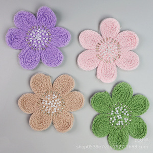 妙艺多色韩版仿手钩花装饰棉线小花朵头花毛衣配饰立体羊毛花