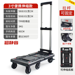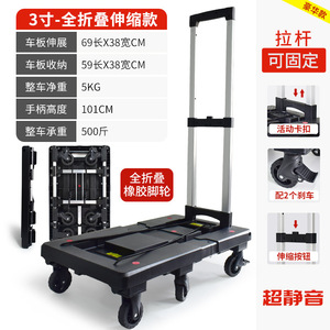 小推车折叠便携伸缩手拉车拉杆车家用平板手推车搬运车拉货小拖车