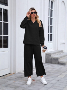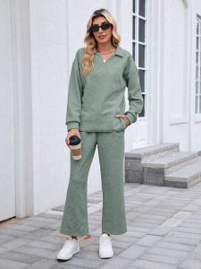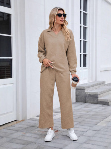 2025秋季新款纯色简约休闲套装女 欧美时尚长袖上衣长裤两件套女