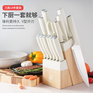 家美康刀具套装新款14件套刀白色厨房不锈钢套刀木座礼品组合套刀