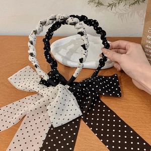 2025波点飘带带齿梳发箍高级感女温柔蝴蝶结绑发头饰气质高颅顶头