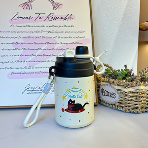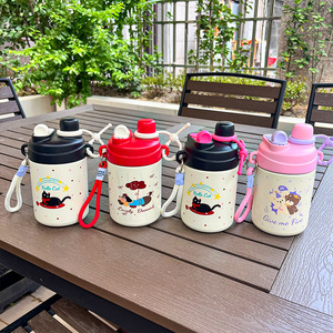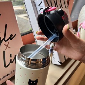 大容量卡通保温杯女新款咖啡杯儿童吸管水杯学生上学双饮杯子保温