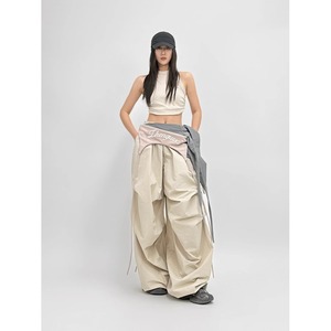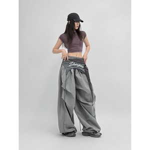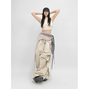 美式叠穿设计感绑带弯刀裤女2025春秋季街头嘻哈跳舞裤子伞兵裤子