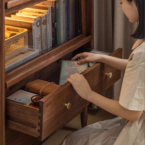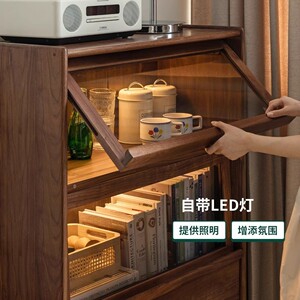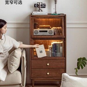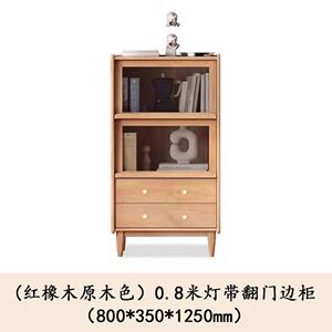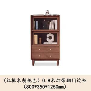 全实木红橡木边柜现代简约客厅收纳储物柜樱桃木置物柜客厅展示架