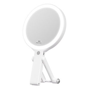 亚马逊便携手持化妆镜 双面带灯充电款旅行台式折叠led化妆镜子
