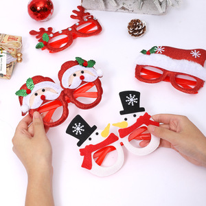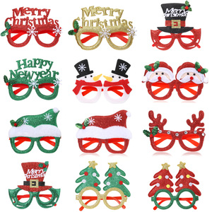 跨境圣诞装饰眼镜成人儿童拍照道具雪人树蝴蝶结眼镜框雪人老人