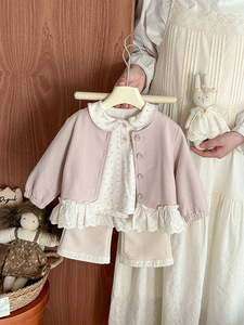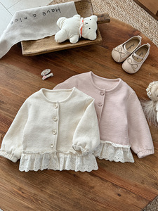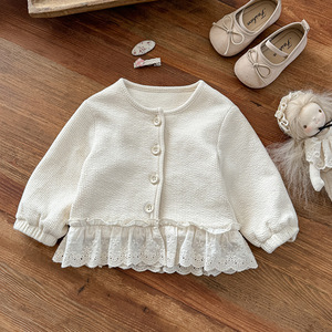 女童外套2025秋新款小女孩花边长袖可爱女宝洋气开衫儿童秋装 a类
