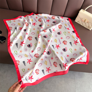 夏日清新贝壳印花丝巾方巾高级感披肩防晒系脖小方巾头巾女士围巾