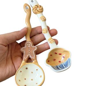 可爱陶瓷小勺子个人高颜值长柄汤勺卡通釉下彩汤匙饭勺调羹