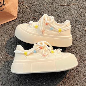 奶fufu厚底贝壳头小白鞋女2025新款爆款秋季百搭轻便增高耐磨板鞋