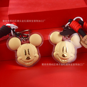 足金999黄金可爱卡通米奇金片包包链手机链车钥匙扣挂件生日礼品