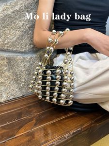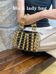 2025法式重工夸张金属镂空手工手串编织女手提包轻奢小众精致女包