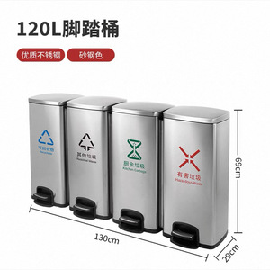 ステンレス製足踏み式ゴミ箱 業務用 蓋付き 屋内医療用キッチン ダブルバケツ 3・4分類衛生バケツ 縦型