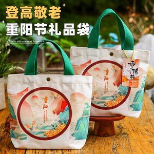 九九重阳节送长辈慰问老人礼物帆布袋新款国风伴手礼手提礼品袋