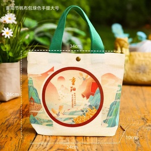 【手提款-中号】重阳节帆布包-绿色;中秋节限定礼袋;12安涤棉