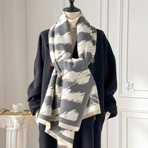黑白条纹披肩双面仿羊绒围巾外搭优雅气质斗篷加厚保暖空调房毯子