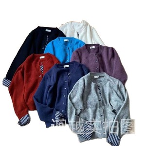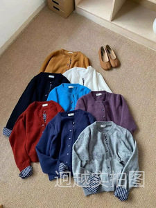 秋季新品韩版气质简约百搭衬衫袖拼接假两件针织衫开衫毛衣外套女