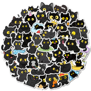 跨境新款50张可爱大眼睛黑色猫咪涂鸦贴纸创意卡通笔记本手账贴纸