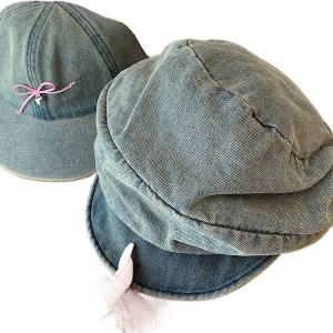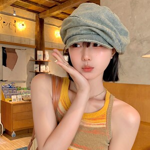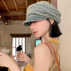 日系文艺水洗牛仔小众设计贝雷帽女百搭显脸小遮阳防晒八角帽子潮