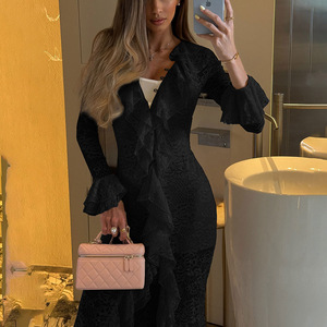 秋の新作フレンチレースフリルスリットドレス女性のデザイン気質ファッション2025国境を越えた通勤
