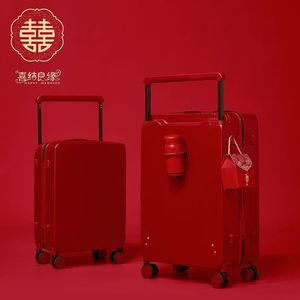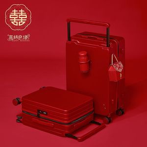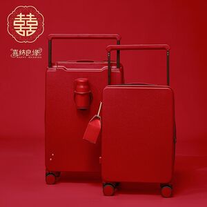 红色行李箱女新娘结婚陪嫁箱宽拉杆密码备婚箱高颜值订婚旅行箱子