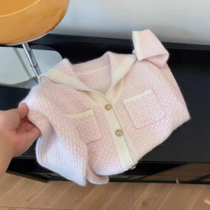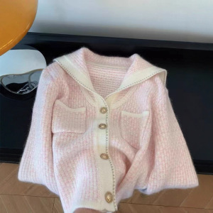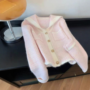 小香风粉色奶呼呼软糯毛衣外套针织开衫女士小个子气质设计感上衣