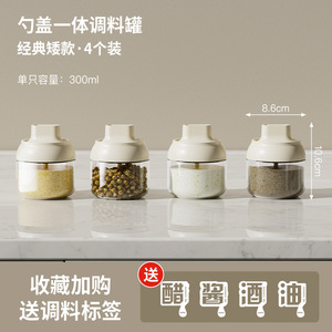 【アップグレードモデル300ML】スプーン付き調味料入れ4個、自由に収納可能