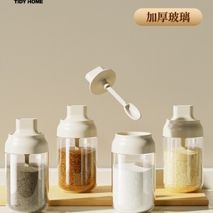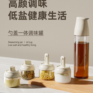 調味料瓶、スプーン蓋一体型家庭用キッチン調味料収納ボックス、オイルポット、塩瓶、調味料ボトル