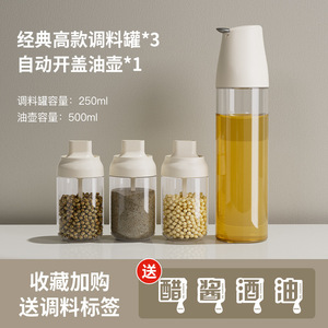 調味料4点セット[アップグレードされた格納式調味料瓶*3+自動オイルポット*1]