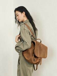 裘真植鞣羊皮信使系列双肩包大容量上班通勤休闲背包2025新款包包