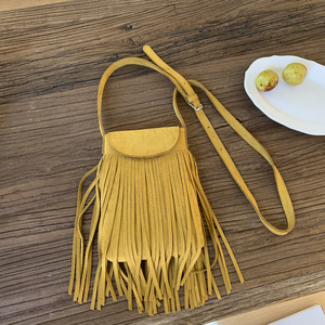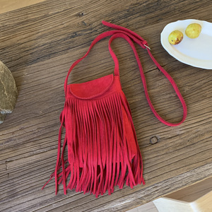 超火波西米亚民族风流苏复古鹿皮绒磨砂斜挎单肩手机包迷你小包包