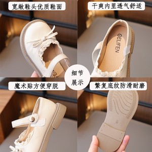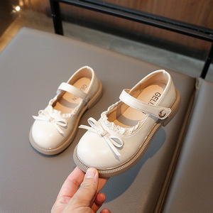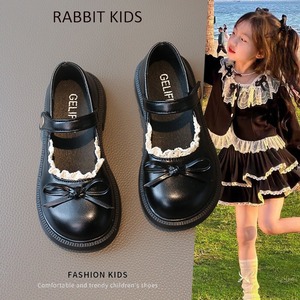 女童蕾丝边蝴蝶结皮鞋鞋子儿童2025春秋新款软底玛丽珍洋气公主鞋