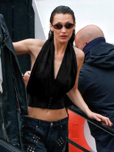 Bella同款宽松挂脖V领针织背心气质成熟女人风大露背无袖短款上衣
