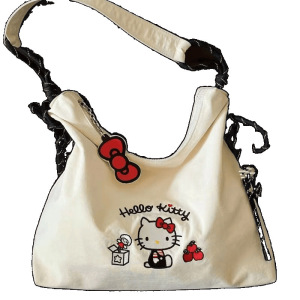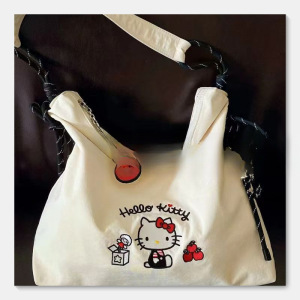 可爱卡通kitty刺绣帆布包女2025新款大容量通勤托特包单肩斜挎包