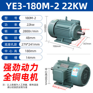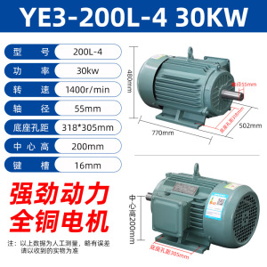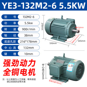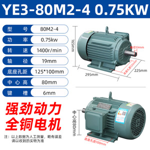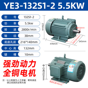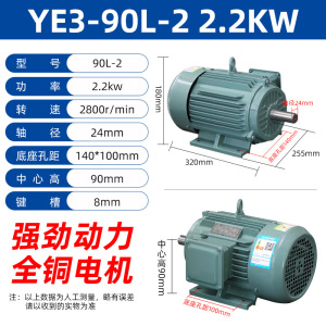 三相异步电动机380v电机0.75 1.1 1.5 3 4KW YE3高效节能全铜电机