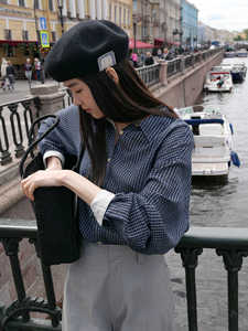 Shijian 秋の日記コントラストカラーフライレトロファッションチェック柄シャツ肌に優しい通気性のあるコットンフィールトップ 01221