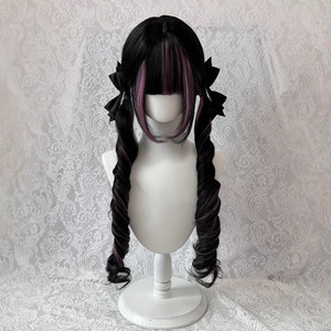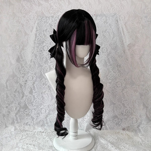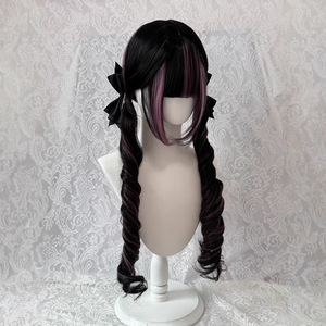 【草莓黑巧】假发女粉黑刘海挑染长卷发齐刘海自带鬓角仿真全头套