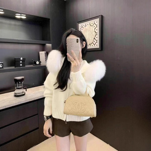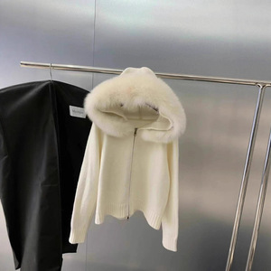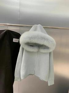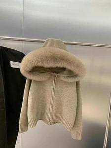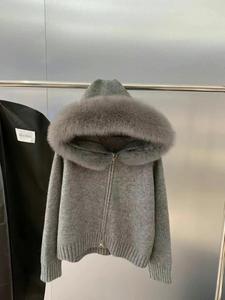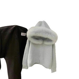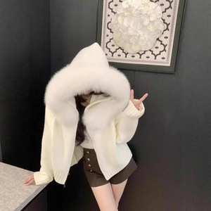 韓国の秋と冬のニットカーディガン、フェミニン、ルーズ、カジュアル、多用途、長袖ファーカラーのフード付きセーター、女性用ファージャケット