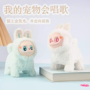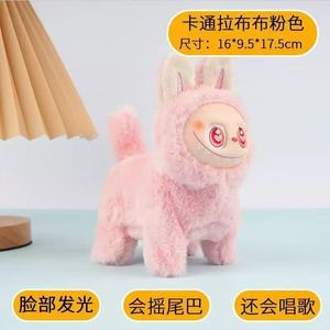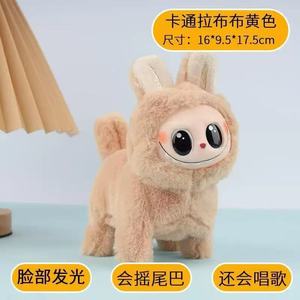 电动拉布布狗labubu毛绒公仔卡通硅胶脸发光会跑会唱歌拉狗狗玩具