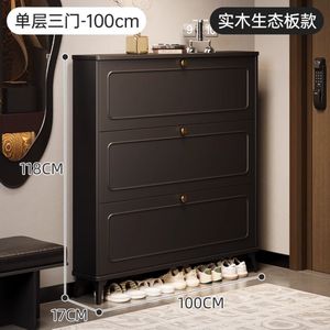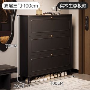 黑色实木鞋柜门口外楼道玄关室内极窄翻斗入户收纳柜一体靠墙